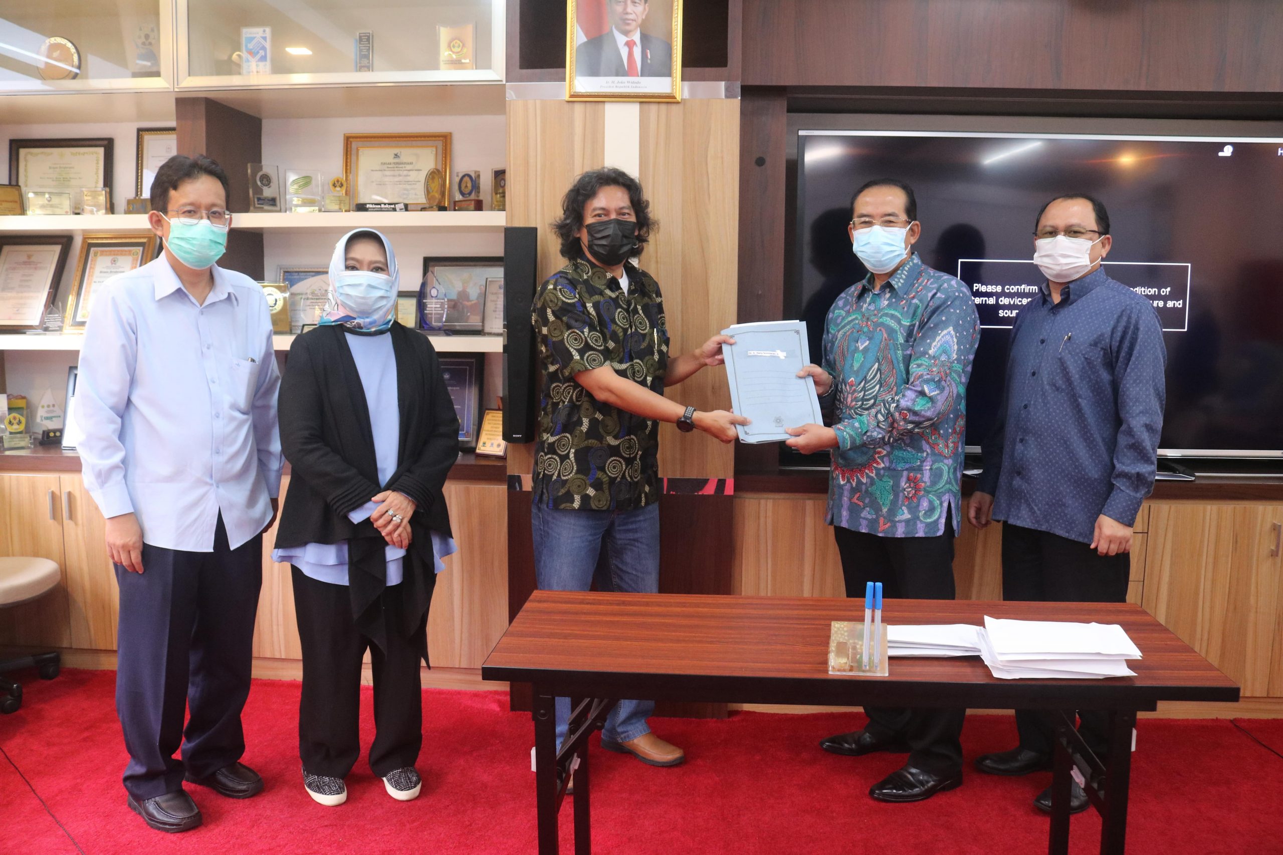 Simbolis penyerahan dana hibah penelitian dari Universitas Pasundan. (Foto: Dok. Humas Unpas)