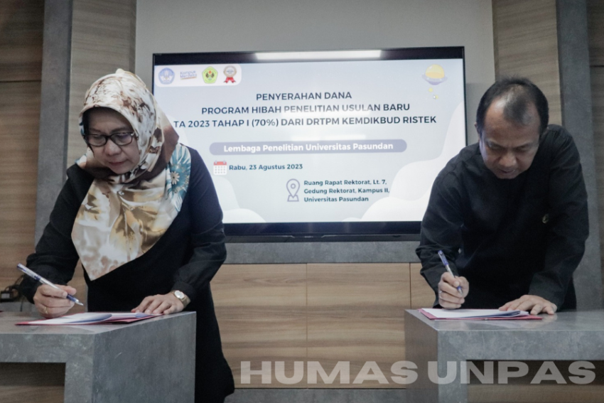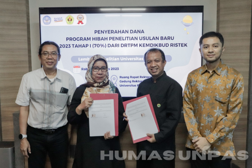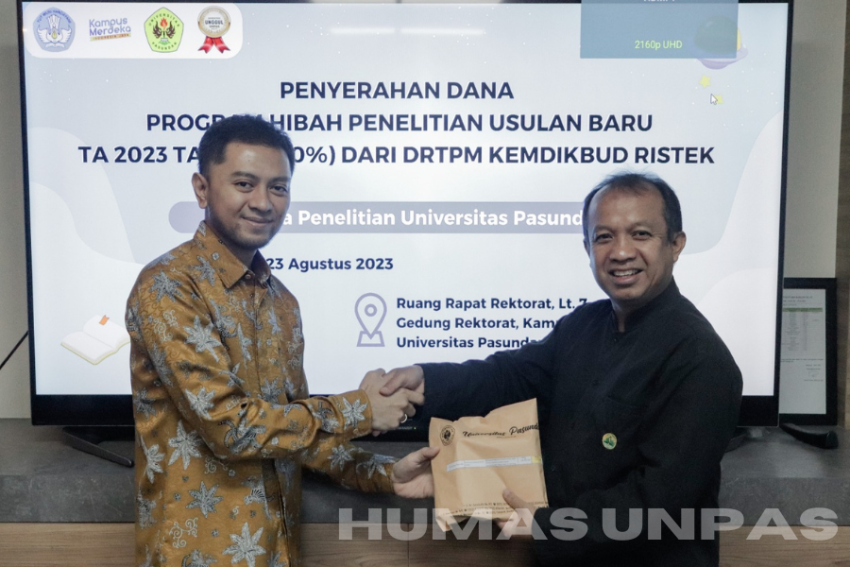 BANDUNG, unpas.ac.id – Universitas Pasundan melalui Lembaga Penelitian (Lemlit) menyerahkan dana Hibah Penelitian Usulan Baru Tahap 1 (70%) kepada 10 dosen penerima hibah, Rabu (23/8/2023).