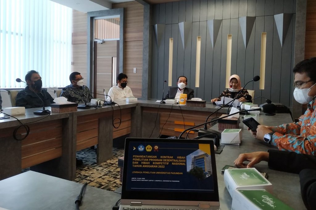 BANDUNG, unpas.ac.id – Sebanyak 12 dosen Universitas Pasundan menandatangani kontrak Hibah Penelitian Program Desentralisasi dan Hibah Kompetitif Nasional Tahun Anggaran 2022, Jumat (15/7/2022).