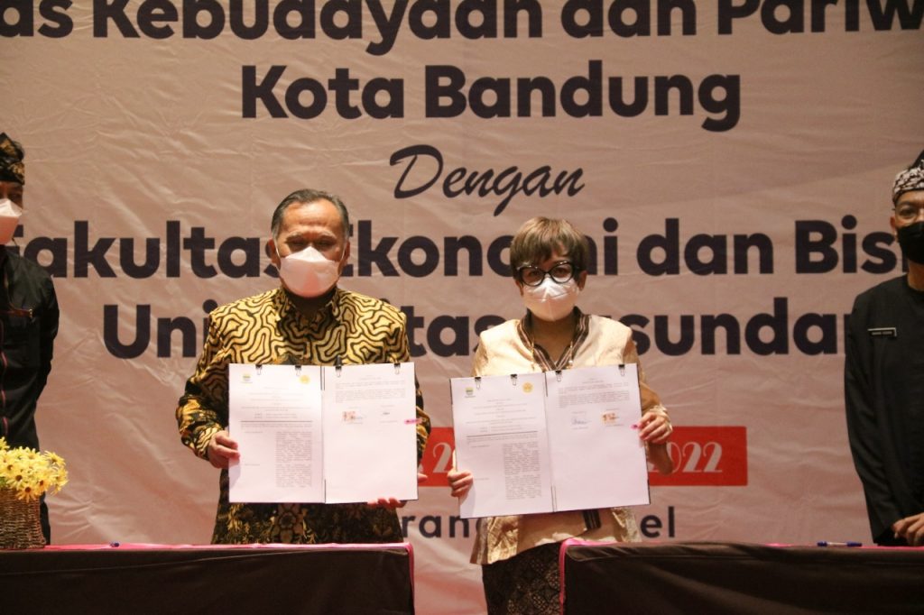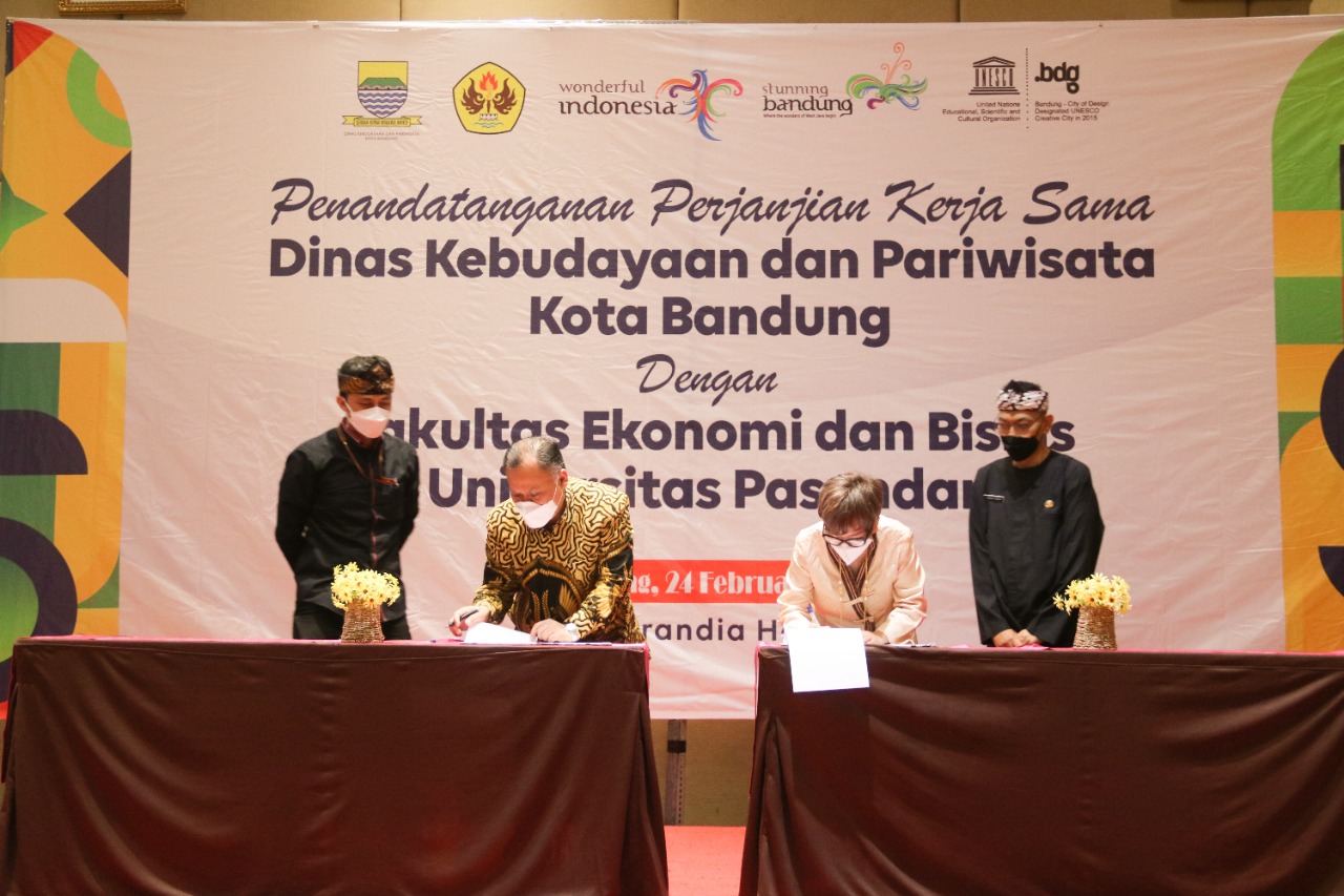 Perjanjian kerja sama ditandatangani langsung oleh Dekan FEB Unpas Dr. H. Atang Hermawan, SE., MSIE.Ak. dan Kepala Disbudpar Kota Bandung Kenny Dewi Kaniasari di Hotel Grandia, Kamis (24/2/2022).