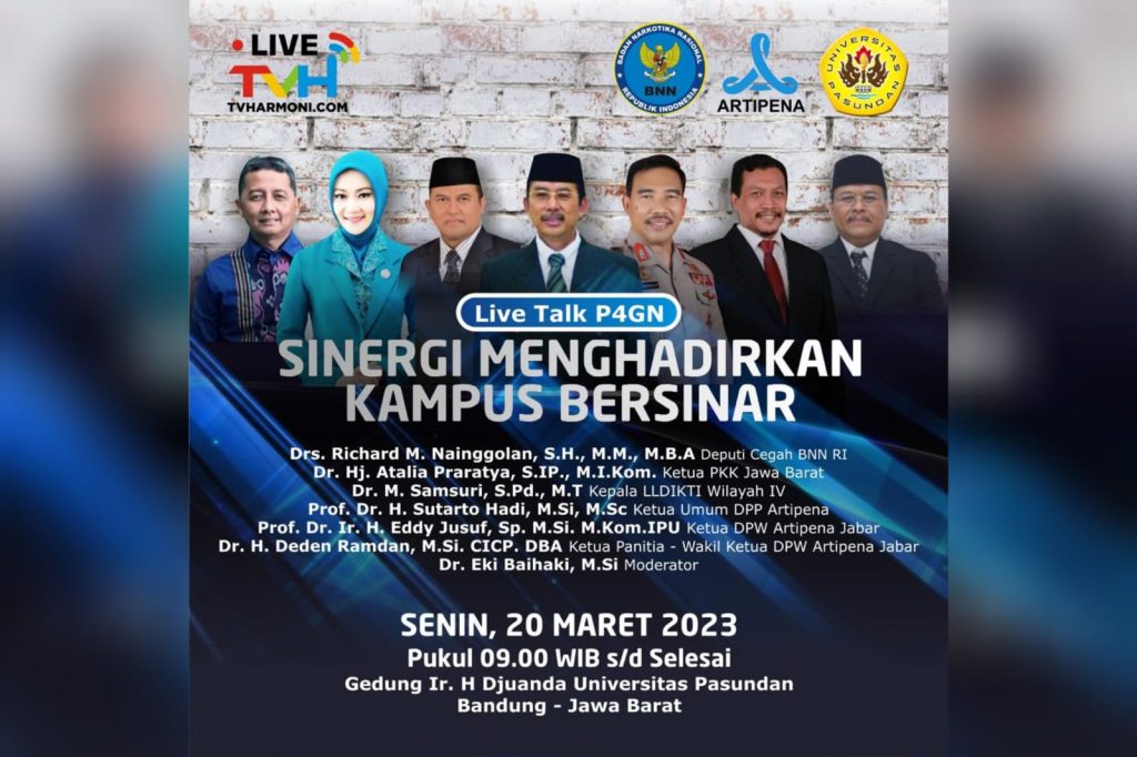 BANDUNG, unpas.ac.id – Universitas Pasundan berkolaborasi dengan Artipena, BNN Pusat, dan BNN Jabar akan menggelar talkshow bertajuk “Sinergi Menghadirkan Kampus…