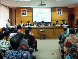 Bupati Majalengka, Sutrisno, (kiri), pada sidang terbuka mempertahankan disertasinya di aula Pascasarjana Universitas Pasundan Jl. Sumatera 41 Bandung, Senin 23 Januari 2017.*