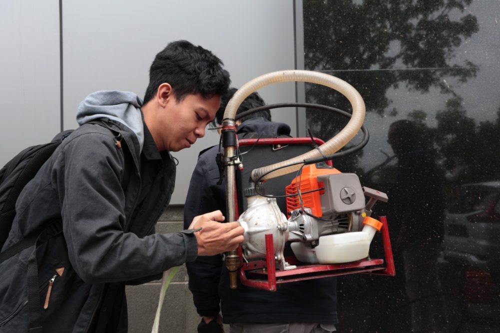 “Portable Fire Pump menggunakan bahan bakar bensin 2 tak dengan daya tampung tangki sekitar 1 liter. Kalau bahan bakarnya penuh, alatnya bisa bertahan selama 1 sampai 1,5 jam,” sambungnya.
