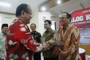 Dekan FISIP Unpas M. Budiana, S.IP., M.Si menyerahkan cenderamata kepada para narasumber pada Dialog Kebangsaan.*