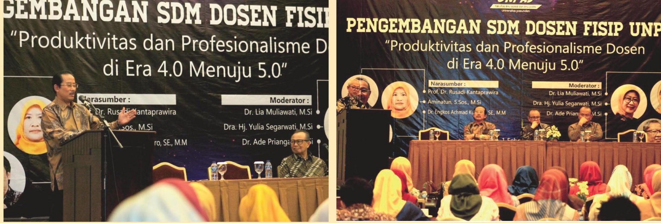 Pada acara tersebut, beberapa guru besar FISIP tampak hadir. Adapun yang memberikan materi adalah Prof. Dr. Rusadi Kantaprawira (guru besar FISIP), Aminatun, S.Sos., M.Si. (LL Dikti), dan Dr. Engkos Ahmad Kuncoro, SE, MM. Acara dipandu oleh tiga dosen FISIP, yaitu Dr. Lia Muliawati, M.Si., Dra. Hj. Yulia Segarwati, M.Si., dan Dr. Ade Priangani, M.Si.