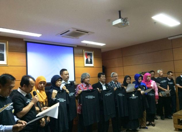 Jajaran FKIP Unpas dan peserta seminar, membacakan deklarasi sebelum acara seminar ditutup.*