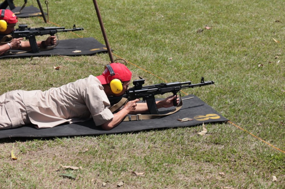Seluruh peserta didampingi oleh instruktur Brimob dan diberi arahan tentang pengenalan senjata, cara memasukkan peluru, membidik sasaran, hingga posisi tubuh saat menembak.
