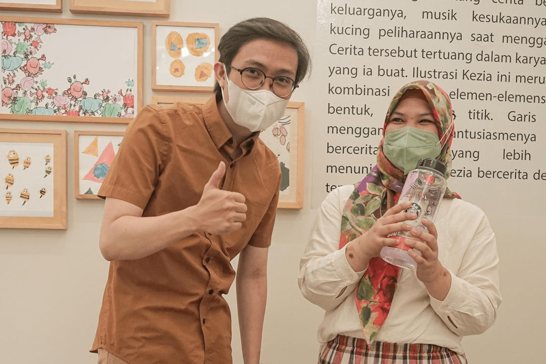 “Klien kami di antaranya Starbucks, Rexona, Otsuka, McKinsey & Company, USAID, dan Indofood. Desain diaplikasikan di produk mereka, misalnya tumbler, kalender, dan lain-lain,” tambahnya.