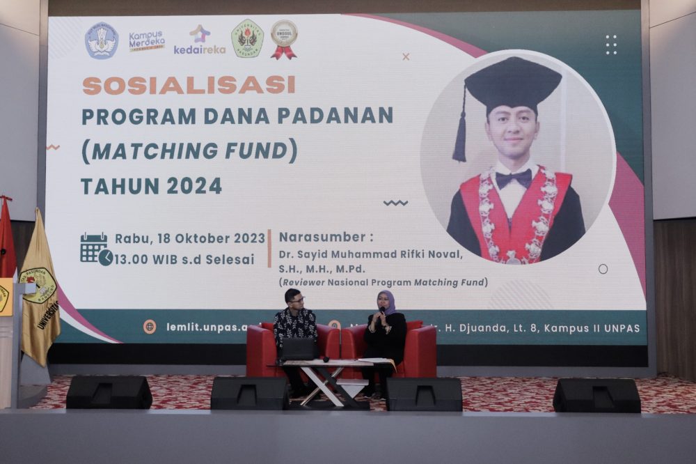 Sementara itu, Reviewer Nasional Program Matching Fund yang juga Dosen Magister Kenotariatan Unpas Dr. Sayid Muhammad Rifqi Noval, S.H., M.H., M.Pd. menjelaskan, terdapat perubahan mekanisme seleksi pada Matching Fund 2024.