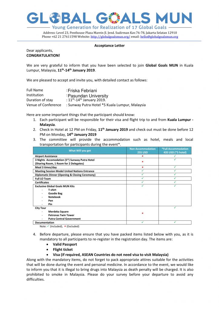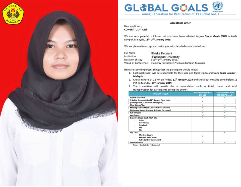 Mahasiswi Unpas terpilih dalam Global Goals Model United Nations di Kuala lumpur Malaysia