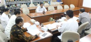 Muhammad Mahmud (menghadap lensa) menjalani tes hafal Quran di hadapan Rektor dan para Wakil Rektor Unpas, serta Ketua dan Sekteratis LPPSI Unpas, di ruang rapat Rektorat, Jl. Setiabudhi 193 Bandung, Jumat 17 Maret 2017. Mahmud, kuliah di Program Magister Manajemen Unpas.*