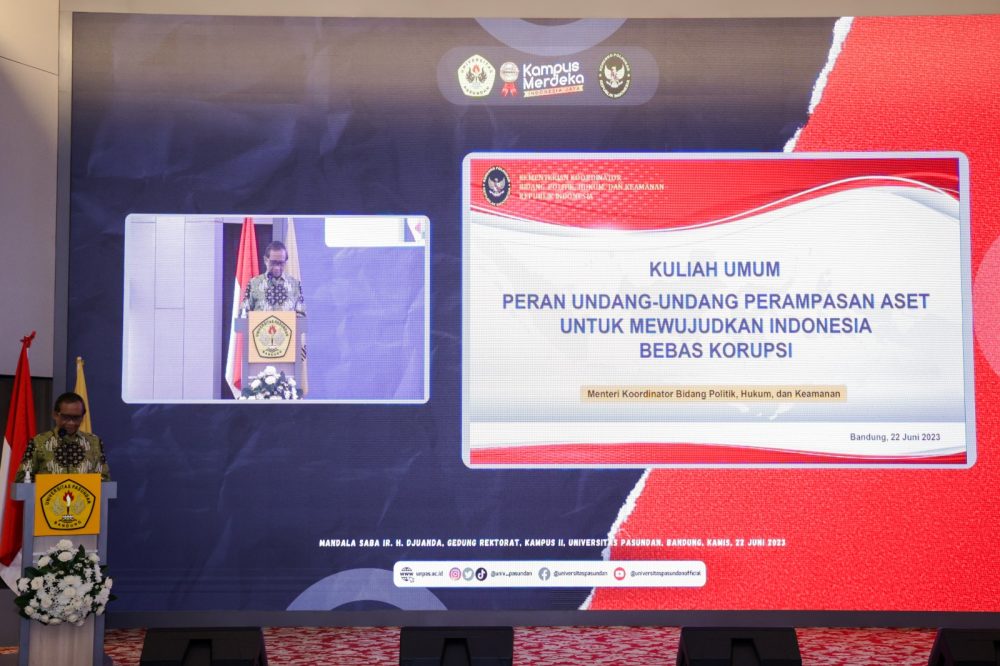 Hal tersebut disampaikan pada Kuliah Umum “Peran UU Perampasan Aset untuk Mewujudkan Indonesia Bebas Korupsi” di Universitas Pasundan, Kamis (22/6/2023).