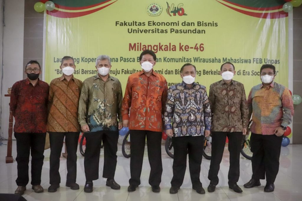 Dalam sambutannya, Rektor Unpas Prof. Dr. Ir. H. Eddy Jusuf Sp, M.Si., M.Kom., IPU., menyampaikan, di usia ke-46, tugas dan tantangan FEB Unpas dalam menyongsong era society 5.0 akan bertambah berat.