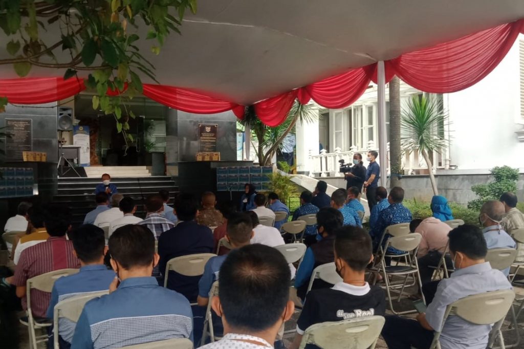 Bantuan sembako diserahkan secara simbolis di halaman Gedung Paguyuban Pasundan, Jalan Sumatra No. 41, Kota Bandung.
