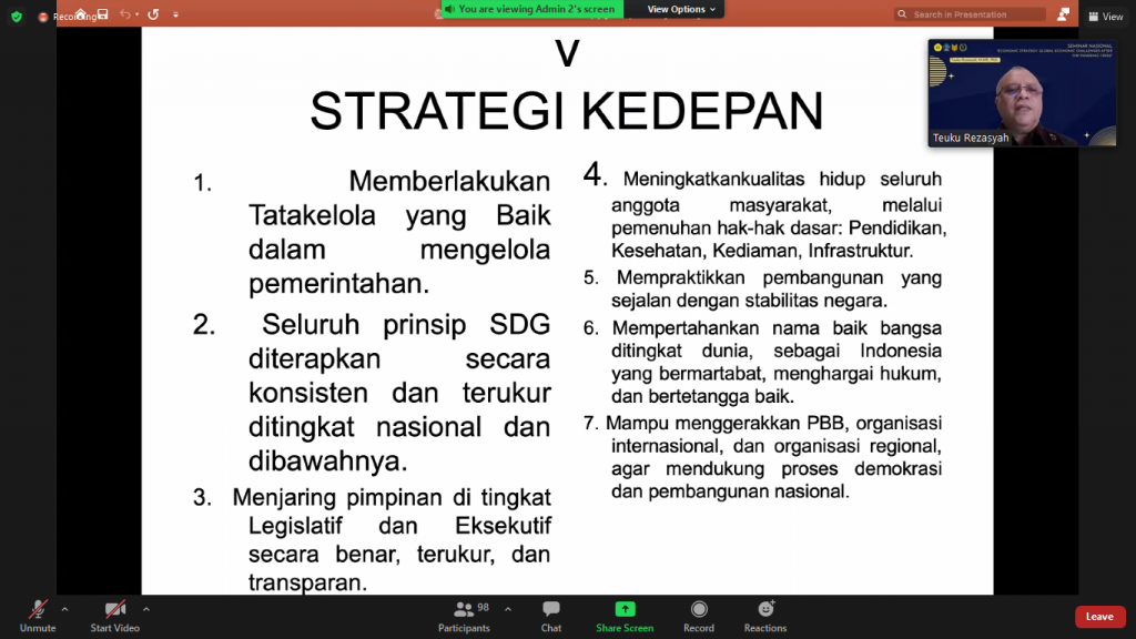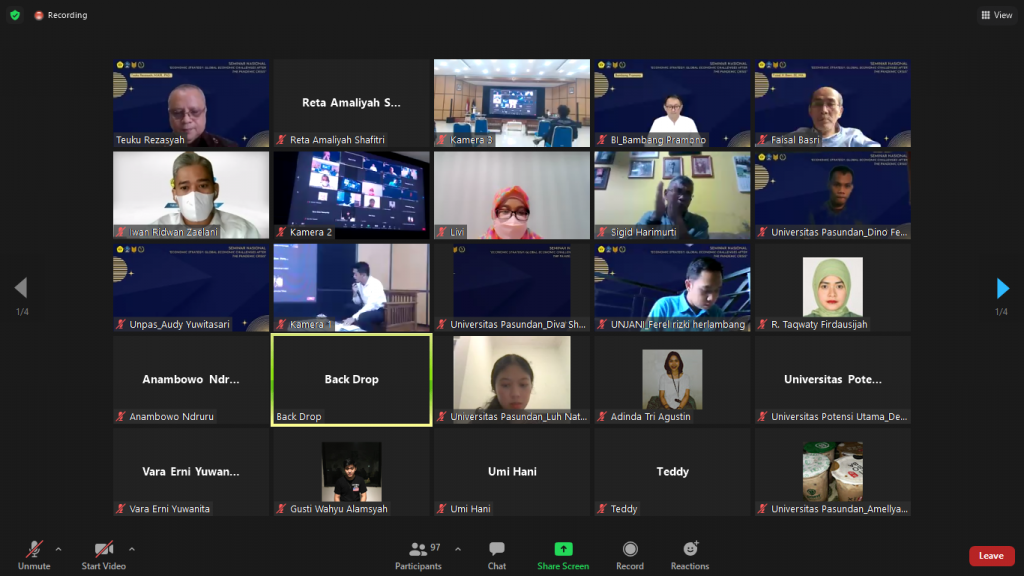 Sehubungan dengan urgensi tersebut, Himpunan Mahasiswa Hubungan Internasional (HIMHI), FISIP Universitas Pasundan menggelar webinar nasional “Economic Strategy: Global Economic Challenges After the Pandemic Crisis”, Kamis (21/4/2022).