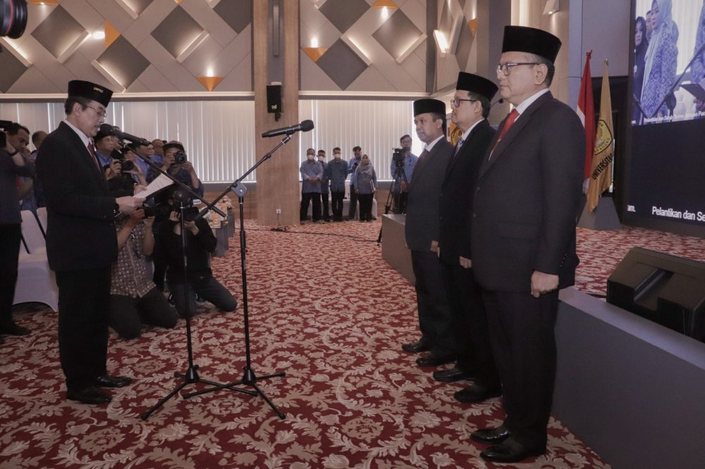Usai pelantikan dan sumpah jabatan, Rektor menyampaikan terima kasih kepada Wakil Rektor yang telah purna tugas atas karya dan sumbangsih yang diberikan, baik dalam kepemimpinan profesional, maupun kepemimpinan publik.