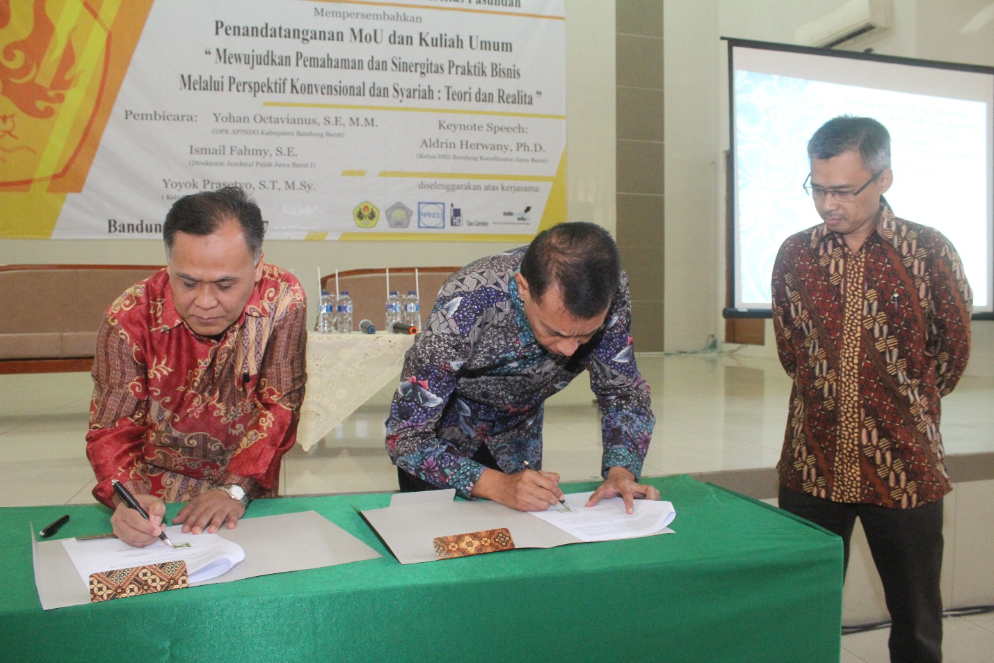 Setelah melakukan kerjasama dengan pihak perguruan tinggi baik di dalam negeri maupun luar negeri, beberapa instansi pemerintahan, asisosiasi dan lembaga profesi seperti ISEI dan Kadin Jawa Barat, FEB kembali menggandeng pihak lainnya, yaitu Asosiasi Pengusaha Indonesia (Apindo) Kabupaten Bandung Barat, HD Tax Center, dan Indo Camp Edu untuk bekerjasama dalam rangka pengembangan dosen di bidang penelitian dan pengabdian pada masyarakat, serta peningkatan kompetensi mahasiswa di bidang pajak dan pasar modal syariah.