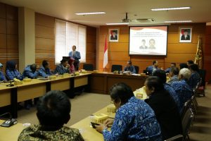 Dr. H. Absar Kartabrata, SH., M.Hum menyampaikan presentasi di hadapan Rapat Senat Universitas Pasundan