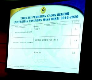 Sebelum pemungutan suara, kedua calon menyampaikan presentasi masing-masing di hadapan Rapat Senat selama 15 menit, dilanjutkan dengan tanya jawab. Presentasi serupa itu disampaikan pula oleh kedua calon pada Desember 2016 yang lalu di 6 fakultas yang ada di Universitas Pasundan. (DB).***