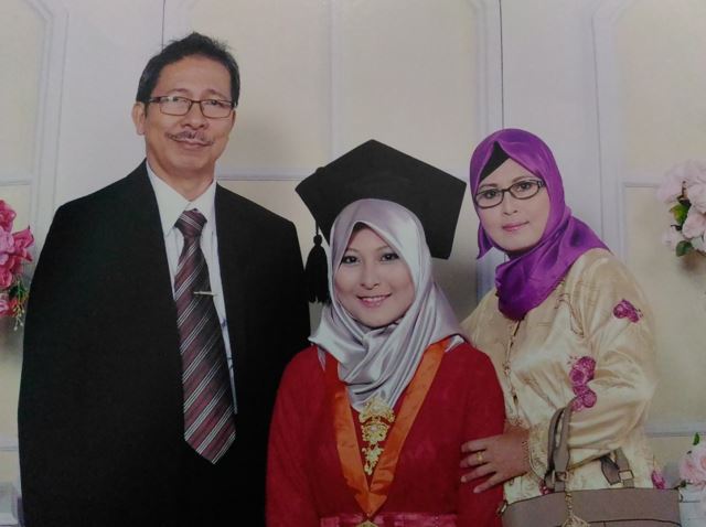 Wisudawati terbaik Universitas Pasundan, Rizky Wirani, bersama kedua orangtuanya.*
