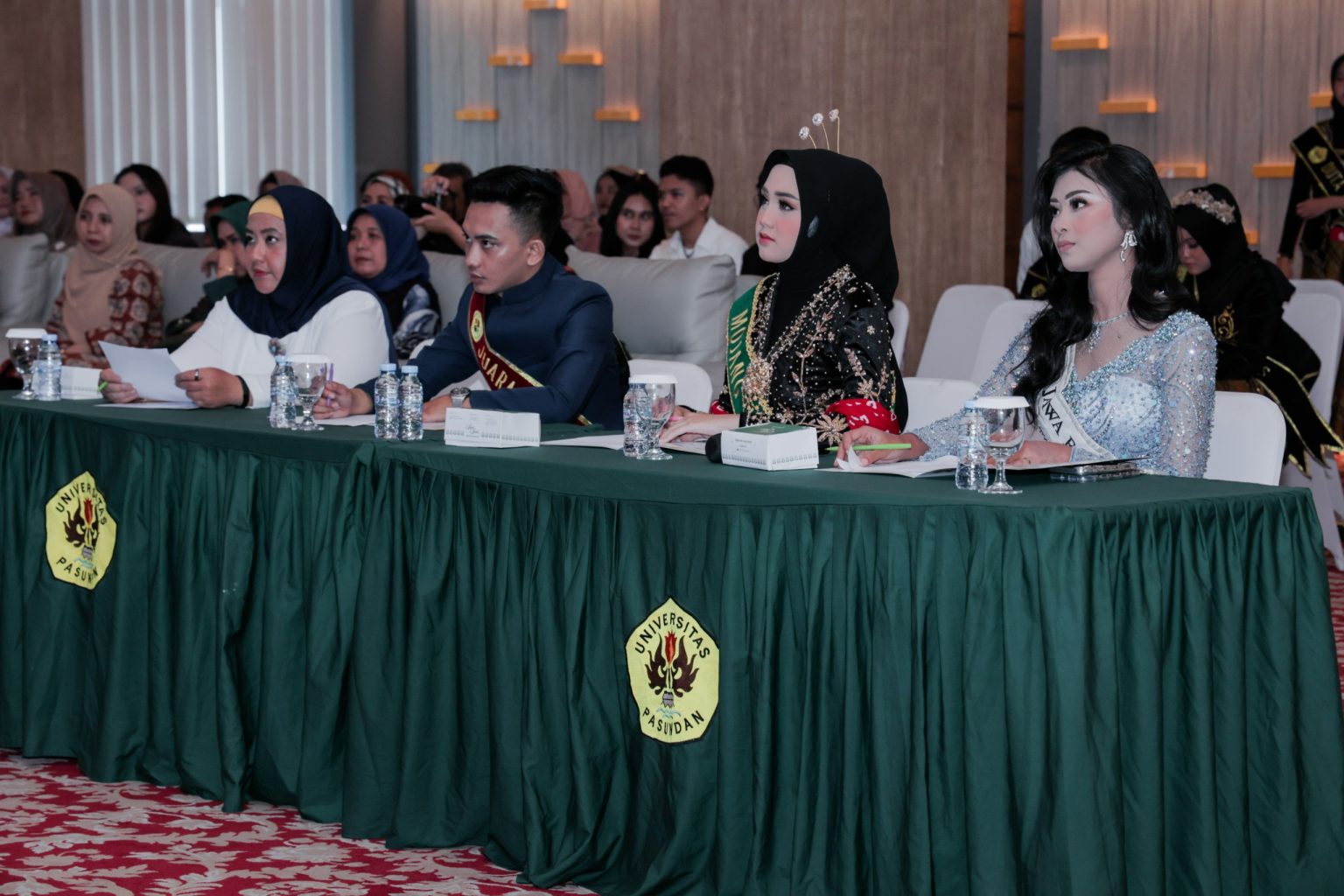 Dosen FISS Unpas Fegy Lestari, S.S., M.Pd., Miss Indonesia 2024 Jawa Barat Niki Anartia, Mojang Jawa Barat 2022 Shafira Zahrah Nabila dan Juara 1 Duta Kampus Unpas 2022 Marthias Daffa Ismail, S.S menjadi juri dalam Grand Final Pasanggiri ini.