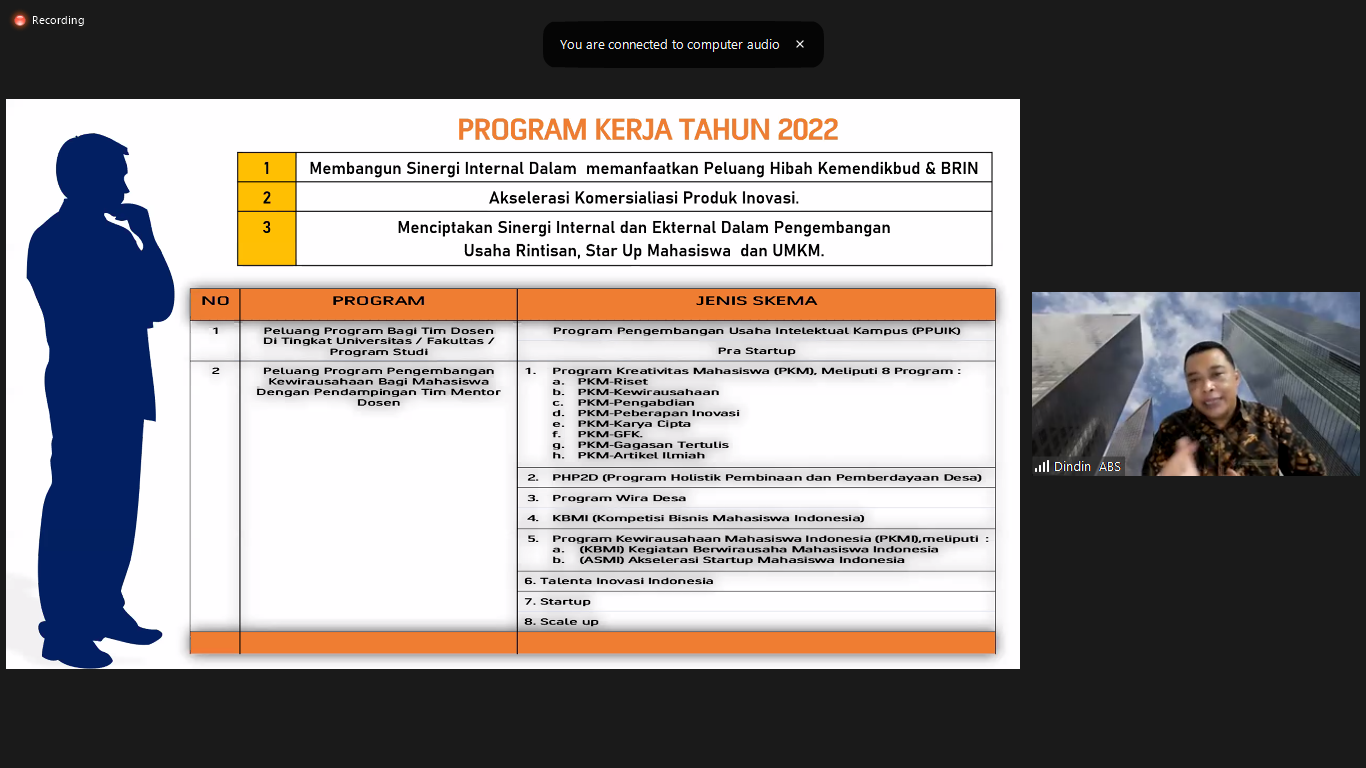“Insya Allah sosialisasi program mentoring akan dilaksanakan sekitar Januari atau Februari 2022. Saya yakin jika program mentoring sudah berjalan, usaha mahasiswa yang terjaring bisa lebih banyak. Ditambah, ada 16 peluang program pengembangan kewirausahaan mahasiswa dengan berbagai jenis skema yang bisa diikuti, ini akan sangat membantu,” sambungnya.