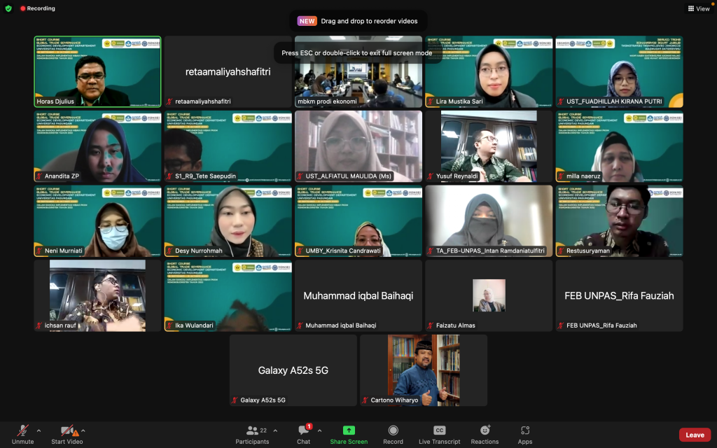 BANDUNG, unpas.ac.id – Program studi Ekonomi Pembangunan, Fakultas Ekonomi dan Bisnis (FEB) Universitas Pasundan menggelar Short Course “Global Trade Governance” bersama Prof. Chae Wook dari Yonsei University Korea.