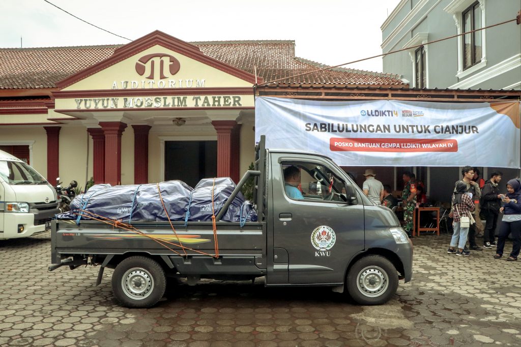 Adapun bantuan tahap pertama yang disalurkan di antaranya selimut, pakaian, bensin, tikar, air mineral, dan makanan. Bantuan dikirimkan ke Posko LLDIKTI IV yang berlokasi di Universitas Putra Indonesia (UNPI) Cianjur. Selanjutnya, akan disalurkan ke sejumlah kecamatan yang terdampak.