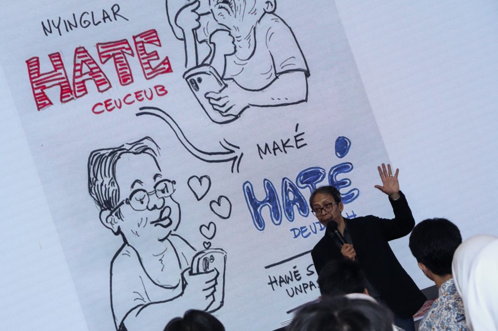 “Salah satunya dengan meningkatkan pengetahuan lokal, khususnya dalam berbahasa daerah. Sebagai urang Sunda, bahasa Sunda tidak cukup jika hanya dituturkan (sehari-hari), tapi bagaimana kita memelihara dan mengaplikasikannya di berbagai aspek, termasuk bermedia sosial,” katanya.