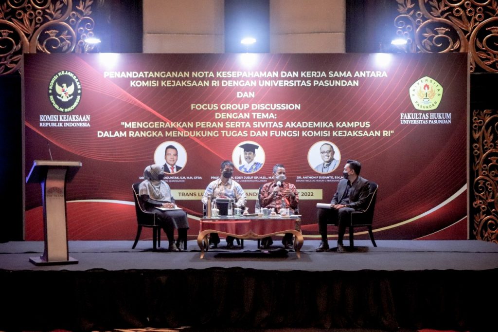 Guna memperkuat pengamatan kinerja dan perilaku jaksa dalam proses peradilan, Komisi Kejaksaan RI menandatangani nota kesepahaman dan kerja sama dengan Universitas Pasundan dan Fakultas Hukum.