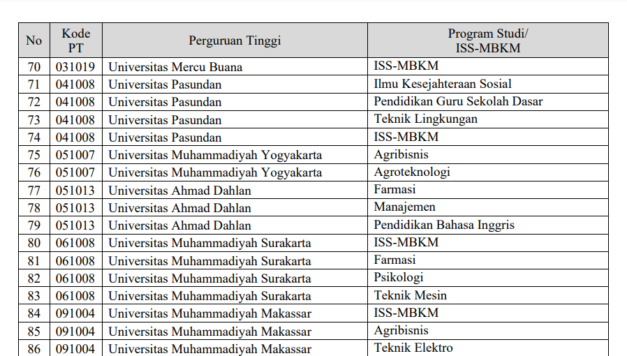 Dari hasil seleksi, terdapat 108 perguruan tinggi penerima bantuan PK-KM Tahun Anggaran 2022 yang terbagi dalam Liga I, Liga II, dan Liga III. Unpas lolos pada kategori Liga I bersama 31 perguruan tinggi lainnya.
