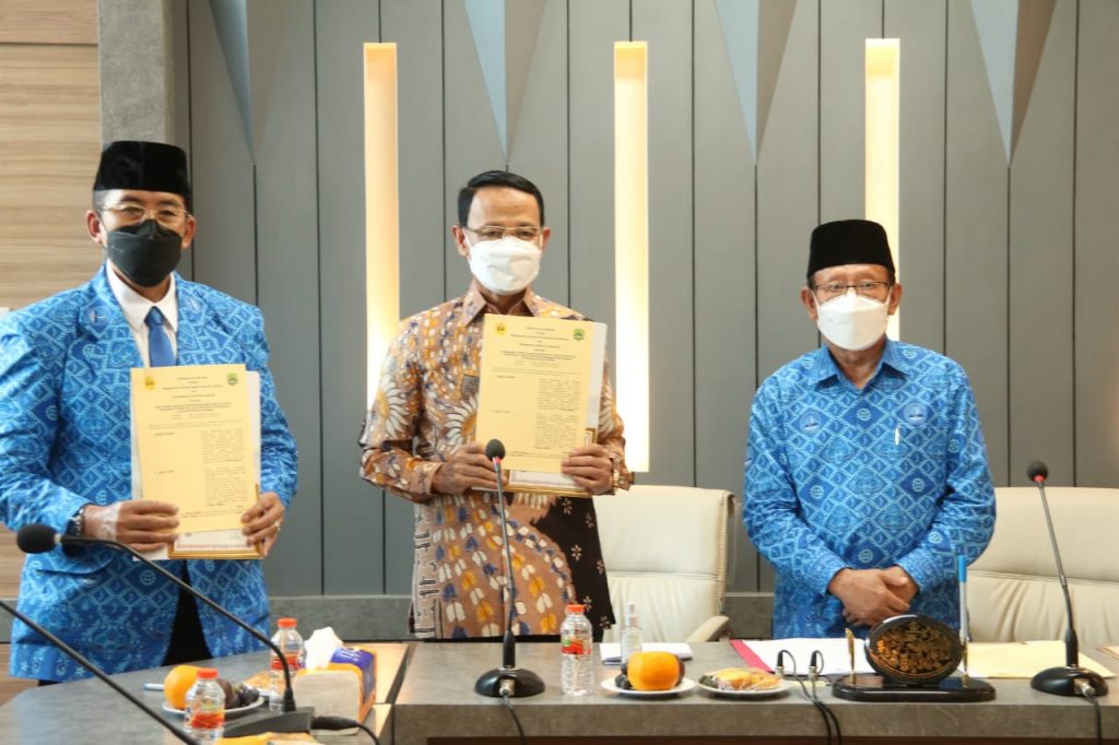 Penandatanganan MoU dilangsungkan usai peresmian gedung baru Rektorat Unpas, Jalan Tamansari No 6-8, Kota Bandung, Senin (20/12/2021).