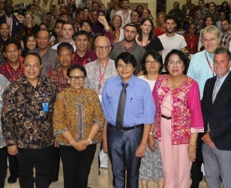 Menteri Luarnegeri RI Retno Marsudi (kedua dari kiri) berada di tengah-tengah peserta The World Indonesianist Forum 2018 di Denpasar, Bali, 29-30 Oktober 2018. Universitas Pasundan mengirimkan 2 mahasiswa asing ke forum ini sebagai peserta aktif.*