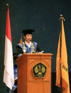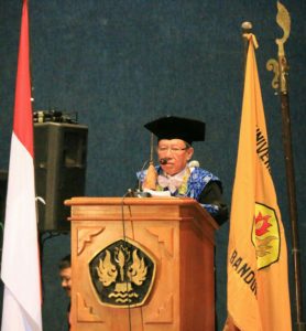 Rektor Unpas Prof. Dr. Ir. H. Eddy Jusuf Sp, M.Si., M.Kom menyampaikan sambutan pada Wisuda hari Sabtu 11 Februari 2017 di gedung Sabuga, Jl. Tamansari, Bandung