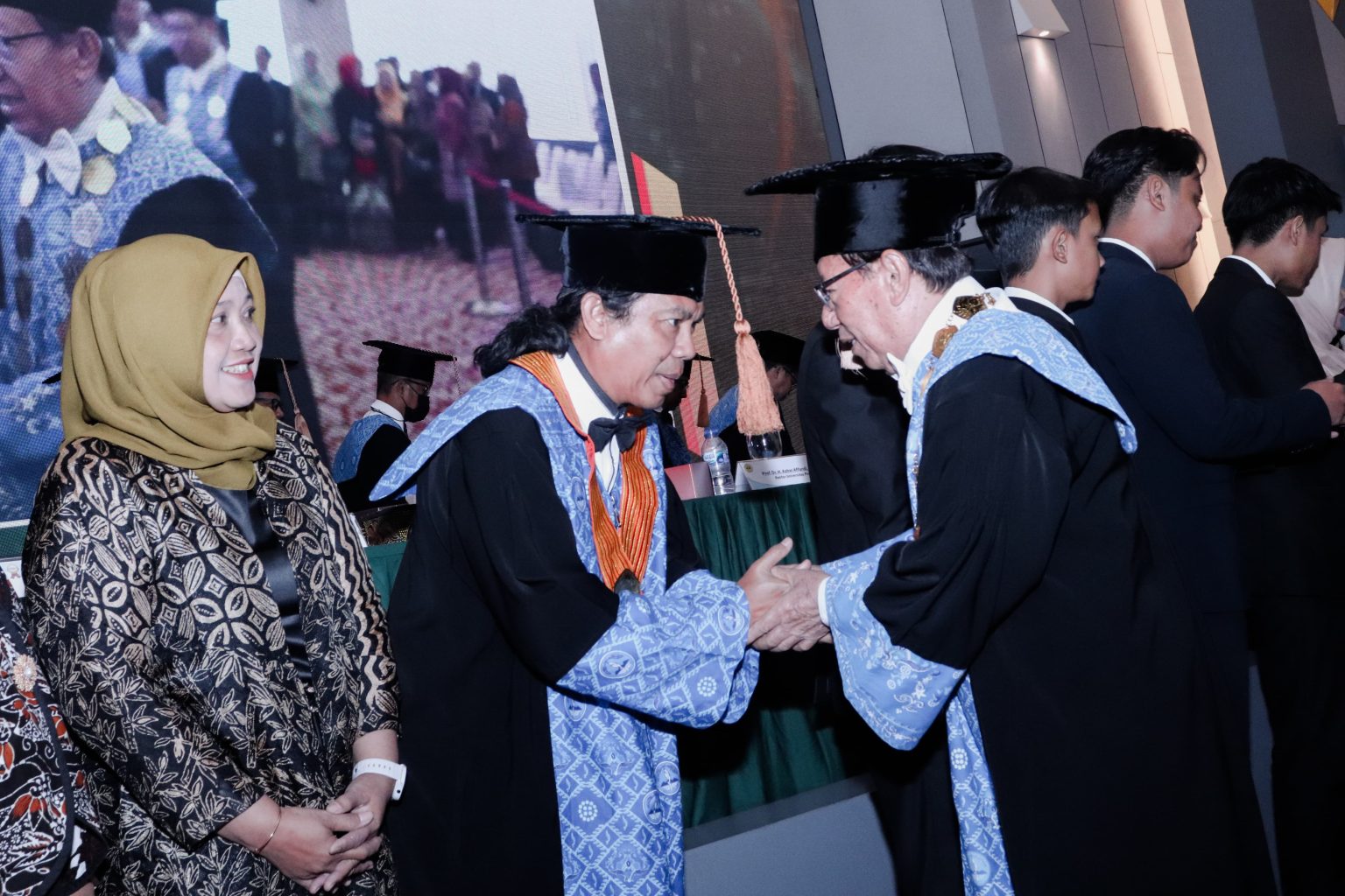Guru Besar Bidang Ilmu Teknik Mesin Prof. Dr. Ir. Hery Sonawan, M.T. bersalaman dengan Ketua Umum PB Paguyuban Pasundan Prof. Dr. H. M. Didi Turmudzi, M.Si. (Foto: Rico B)