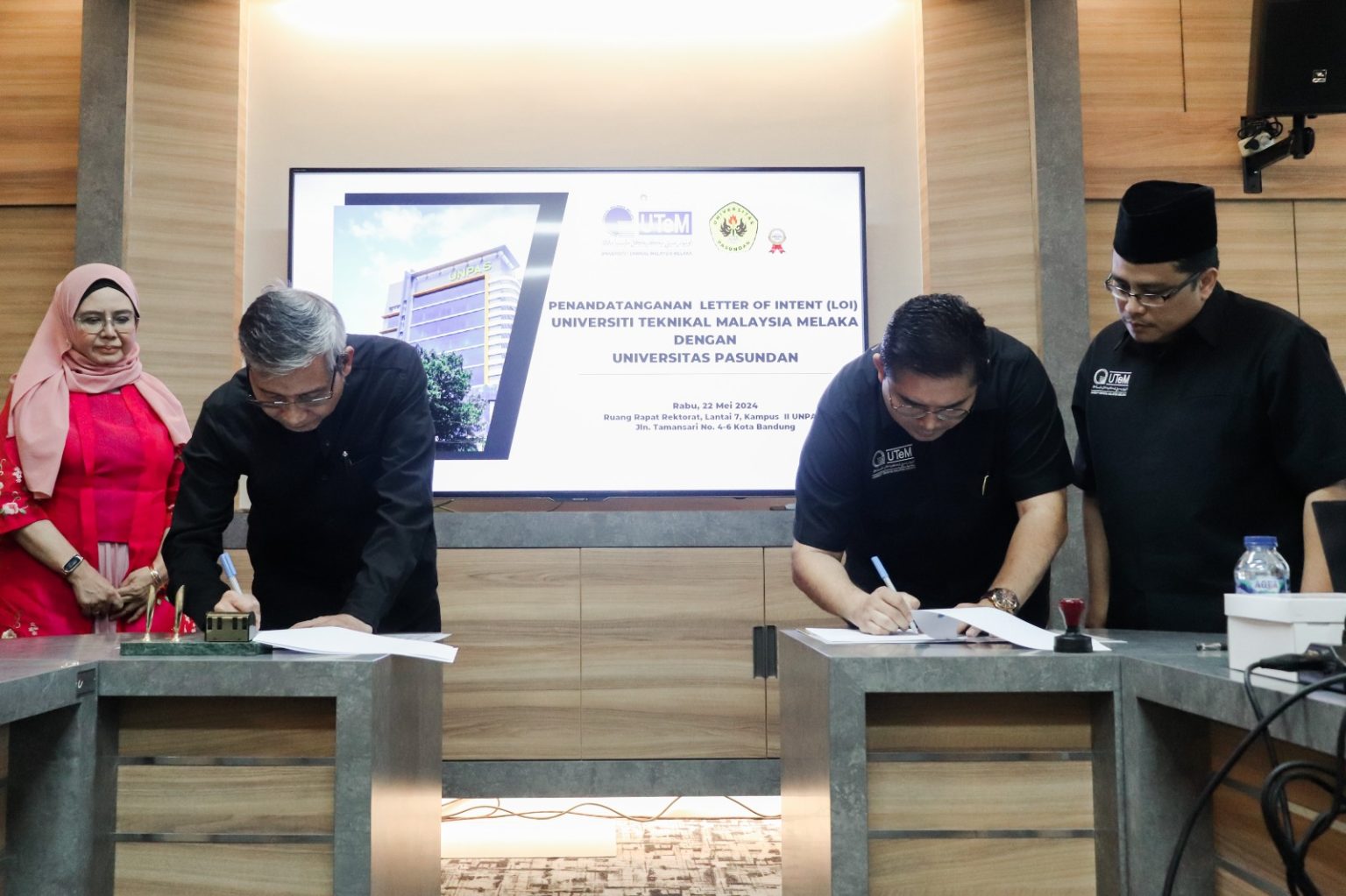 BANDUNG, unpas.ac.id – Universitas Pasundan melakukan penandatanganan Letter of Intent (LoI) dengan Universiti Teknikal Malaysia Melaka (UTeM) di Ruang Rapat Rektorat Lantai 7 Kampus II Unpas Tamansari, Rabu (22/5/2024).