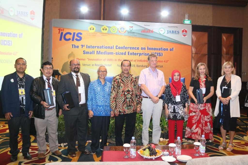 Rektor Unpas Prof. Dr. Ir. H. Eddy Jusuf Sp, M.Si., M.Kom (kelima dari kiri) bersama para pemateri dan berbagai negara, dan panitia pada Seminar Internasional Usaha Kecil dan Menengah (The Ist International Conference on Innovation of Small Medium-sized Enterprise – ICIS), Senin, 29 April 2019, di Hotel Elroyale, Jalan Merdeka, Bandung.