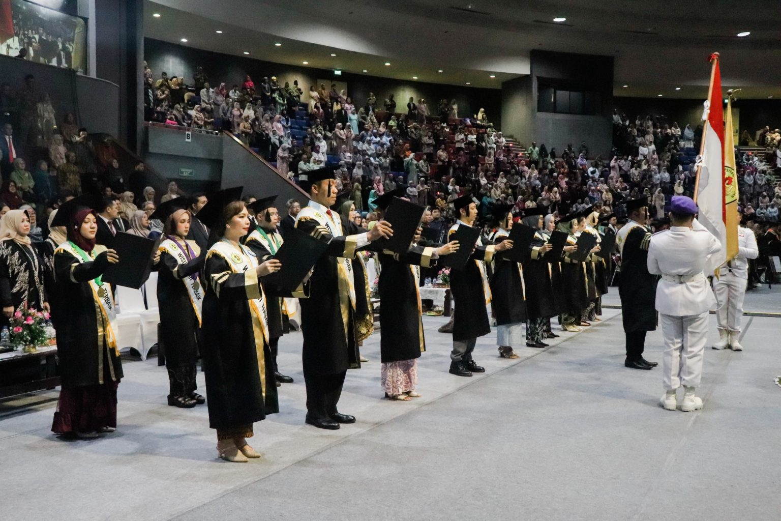 Prof. Azhar menyampaikan memasuki fase baru tersebut modal utama wisudawan untuk memberikan karya nyata adalah kompetensi dan kapabilitas. “Jadilah alumni yang berkualitas dan berani mengambil keputusan secara cepat dan tepat,” ucapnya.