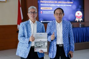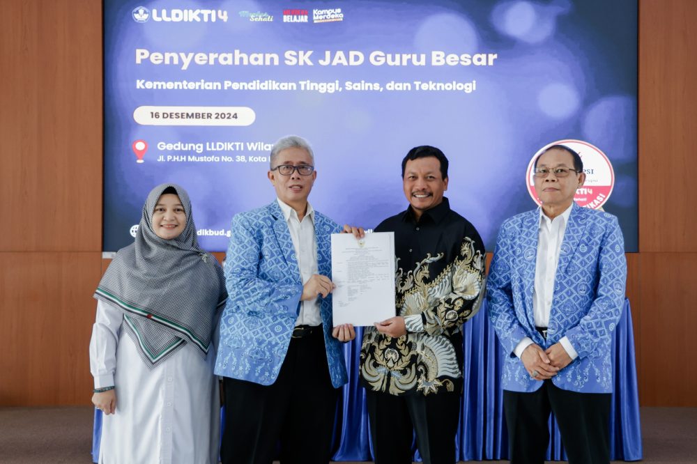 SK diserahkan langsung oleh Kepala LLDIKTI Wilayah IV Jawa Barat dan Banten Dr. M. Samsuri, S.Pd, M.T., IPU. di Aula Gedung A LLDIKTI Wilayah IV, Senin (16/12/2024). Ia mengucapkan selamat dan memberi apresiasi kepada para dosen yang telah mendapat jabatan Guru Besar.