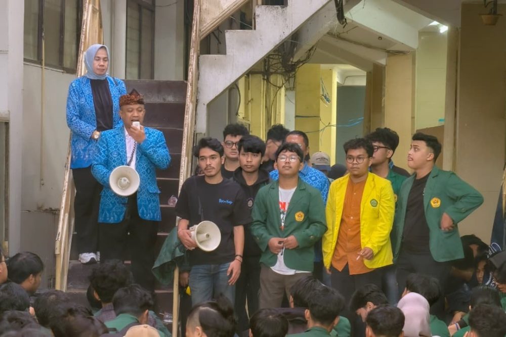 Wakil Rektor Bidang Pembelajaran, Kemahasiswaan, Alumni, Agama, dan Budaya (Belmawabud) Unpas Prof. Dr. Cartono, M.Pd., M.T. menyampaikan pesan dan arahan secara langsung kepada para mahasiswa didampingi Kepala Biro Belmawabud Rd. Hj. Iin Martina, S.H. di Kampus II Unpas, Jalan Tamansari Nomor 4-8, Kota Bandung.