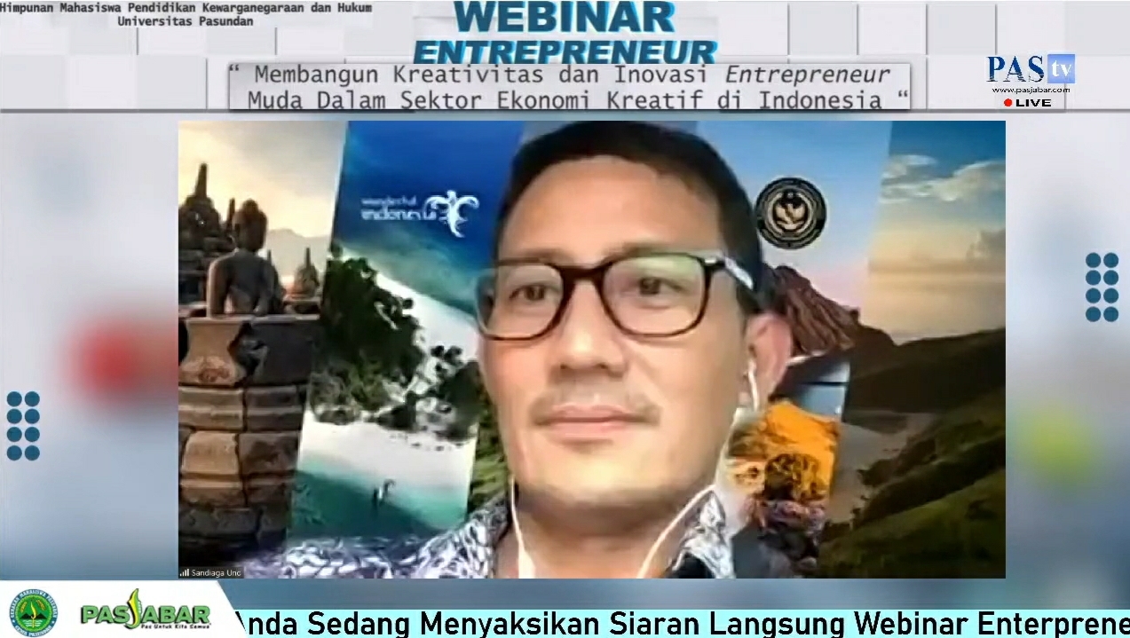 Menteri Pariwisata dan Ekonomi Kreatif Sandiaga Uno saat menjadi pembicara di Webinar Entrepreneur "Membangun Kreativitas dan Inovasi Entrepreneur Muda dalam Sektor Ekonomi Kreatif di Indonesia".