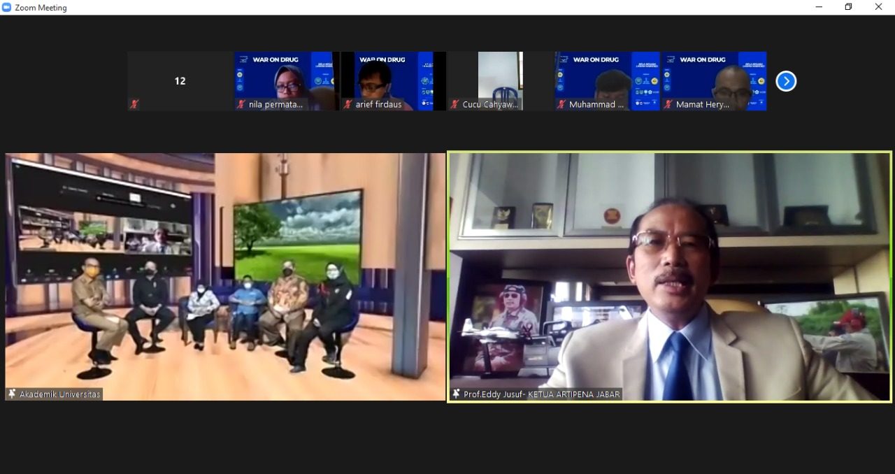 Dalam sambutannya sekaligus membuka acara, Ketua Artipena Jabar yang juga Rektor Unpas Prof. Dr. Ir. H. Eddy Jusuf Sp. M.Si. M.Kom IPU mengatakan, webinar digelar dalam rangka mendukung kebijakan Kepala BNN Republik Indonesia dengan tagar #WarOnDrugs sebagai upaya melawan narkoba.